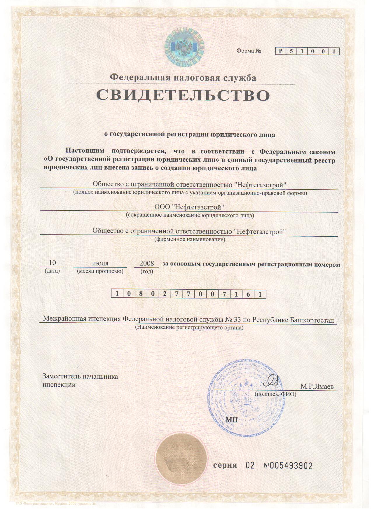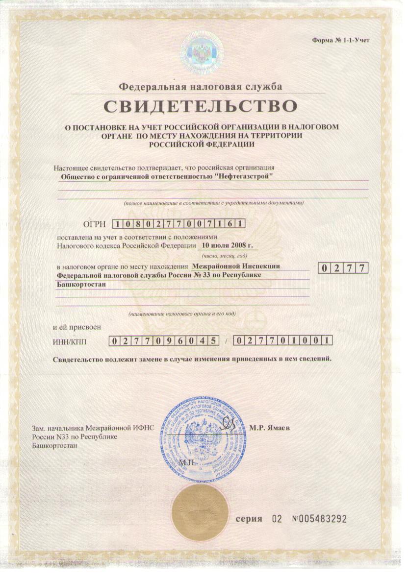 | Полное наименование предприятия | Общество с ограниченной ответственностью «НЕФТЕГАЗСТРОЙ» |